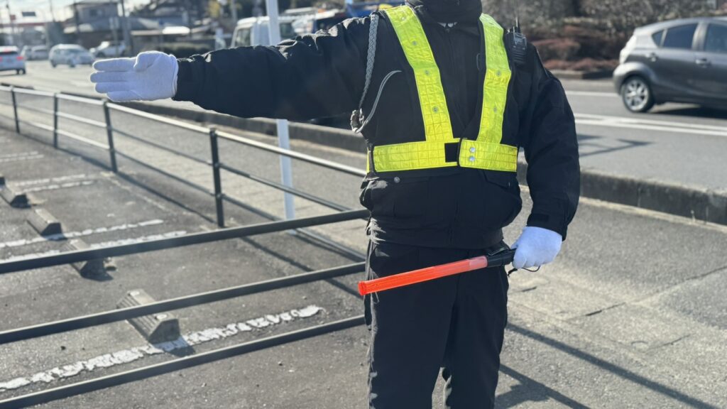 工事現場や施設出入口、イベント会場周辺などにおいて、車両・歩行者の安全を確保し、交通事故や混雑を防ぐための警備業務です。
